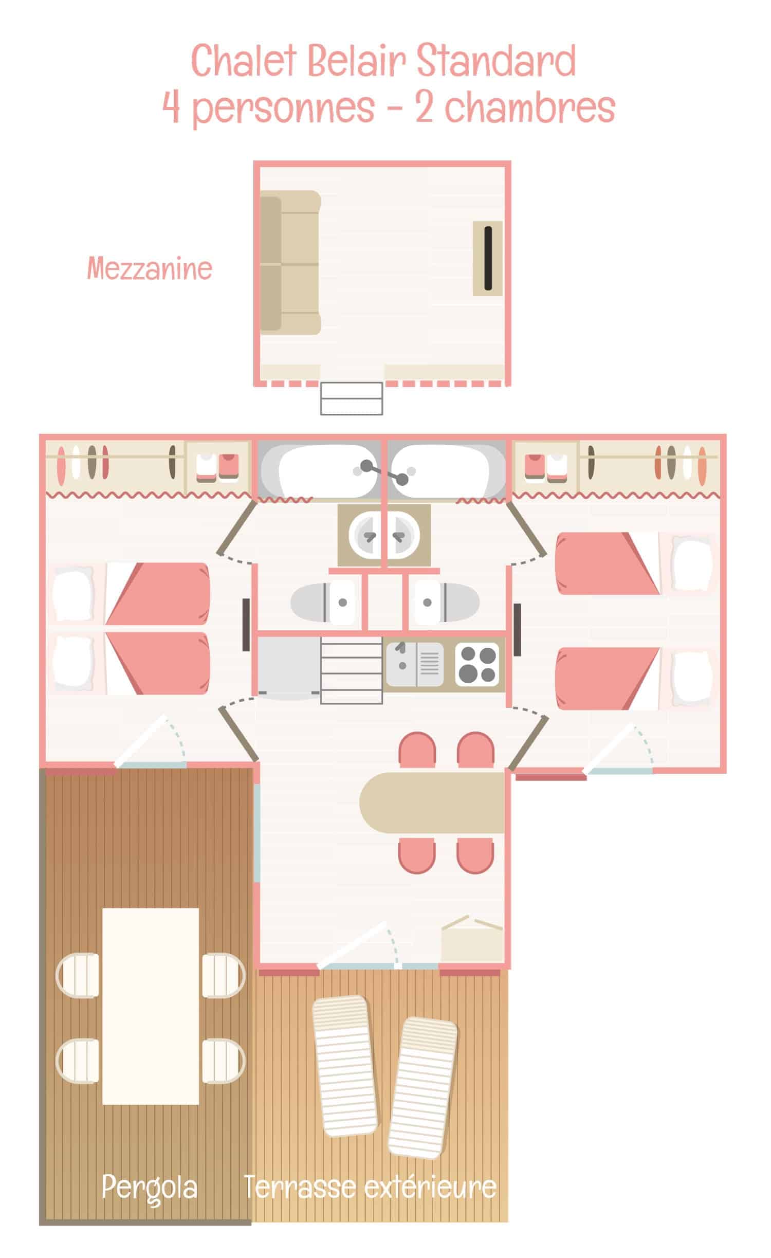 Chalet Belair Bany Standard 4 personnes 2 chambres (10 unités)